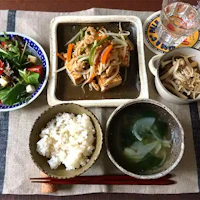 食物繊維豊富な野菜と海藻類、発酵食品たっぷりの献立です。
